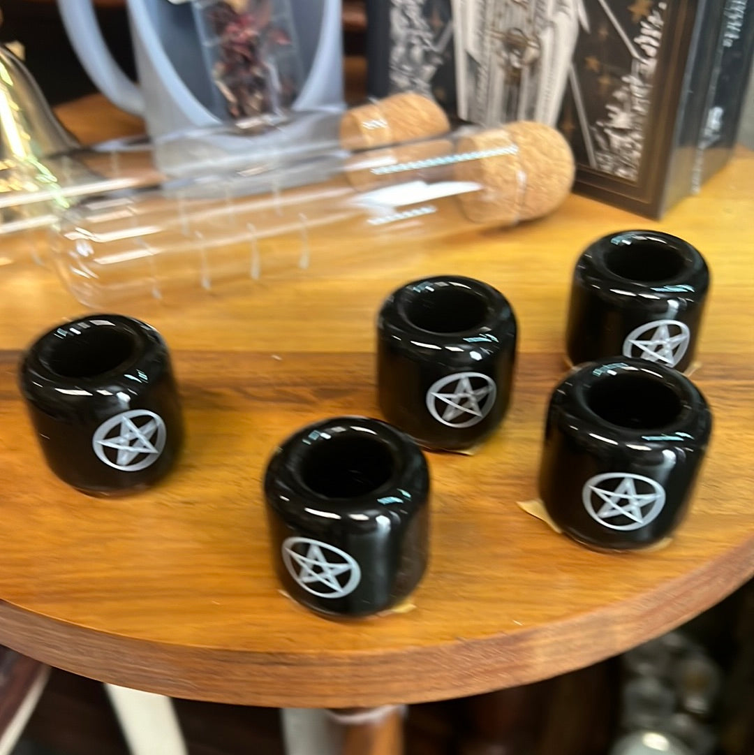 Invoke the mystical energies with our Pentacle Candle Holder, an essential for any witch's altar. Designed for small candles, this enchanting black holder is adorned with a powerful pentacle, a symbol of protection, balance, and the five elements. Handcrafted with precision, it’s the perfect companion for your rituals, meditation sessions, or as a striking, magical accent in your sacred space.